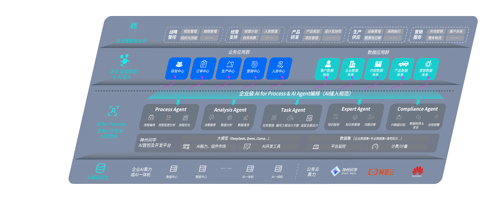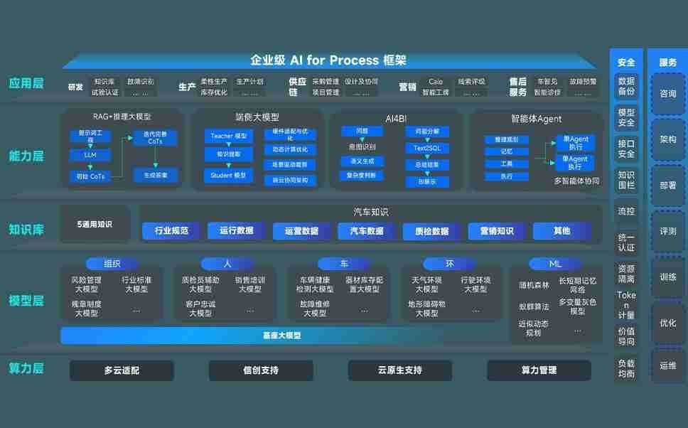 端到端的一站式AI工作空间深度融合了从企业战略规划到日常经营的全流程业务板块,,定向解决车企内部领域多、、、、部门多、、、链条长、、、场景碎片化等难题,,,,支持车企快速构建以AI为核心的生产力写作体系,,,,实现任务执行与AI能力的无缝集成与交互